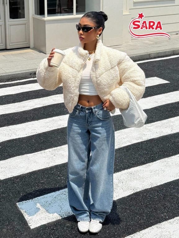 Nossa jaqueta puffer em textura teddy é a união perfeita entre o estilo urbano e o conforto absoluto. Na cor off-white, ela combina com qualquer look, do jeans ao vestido