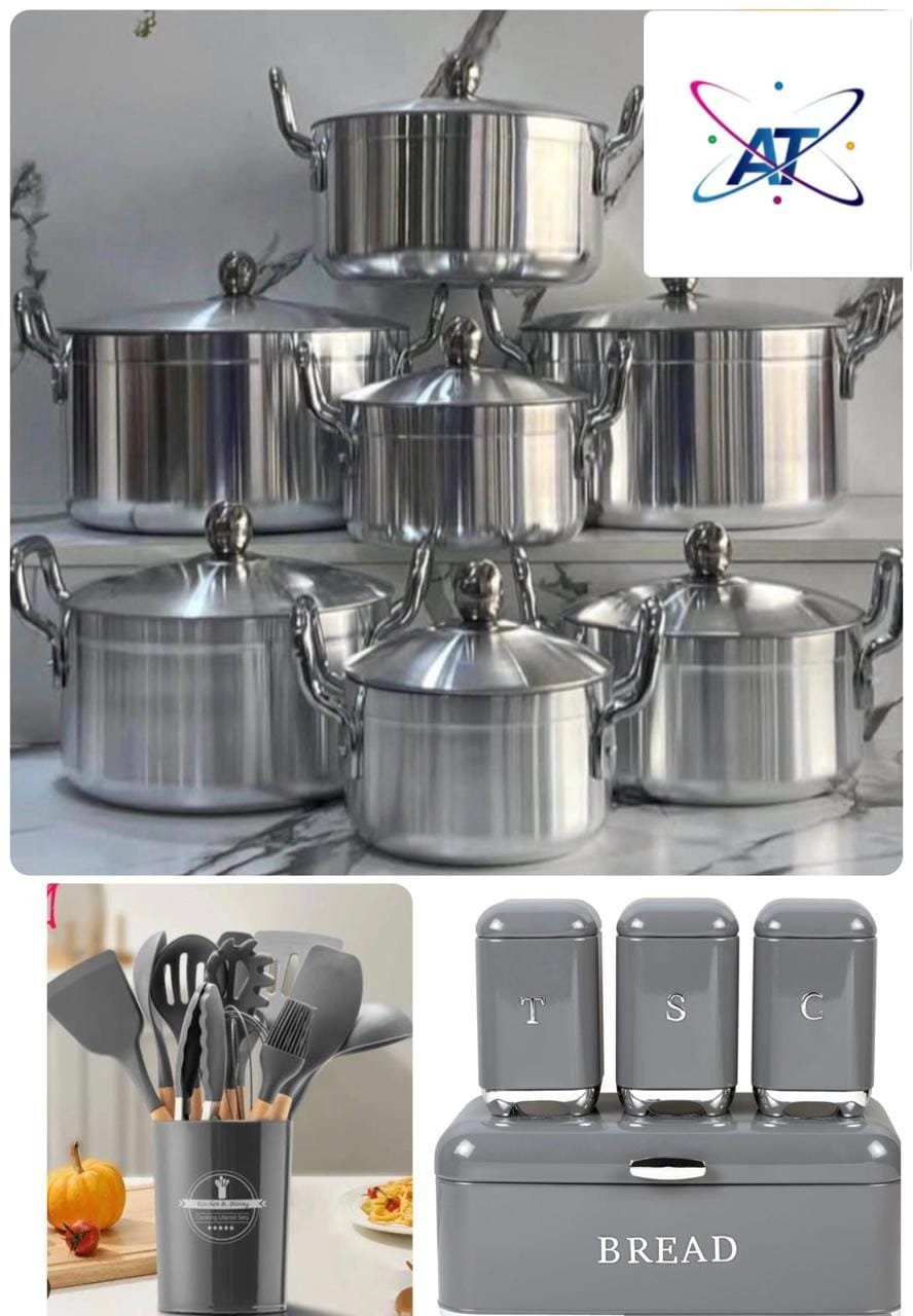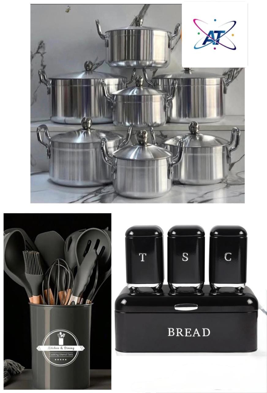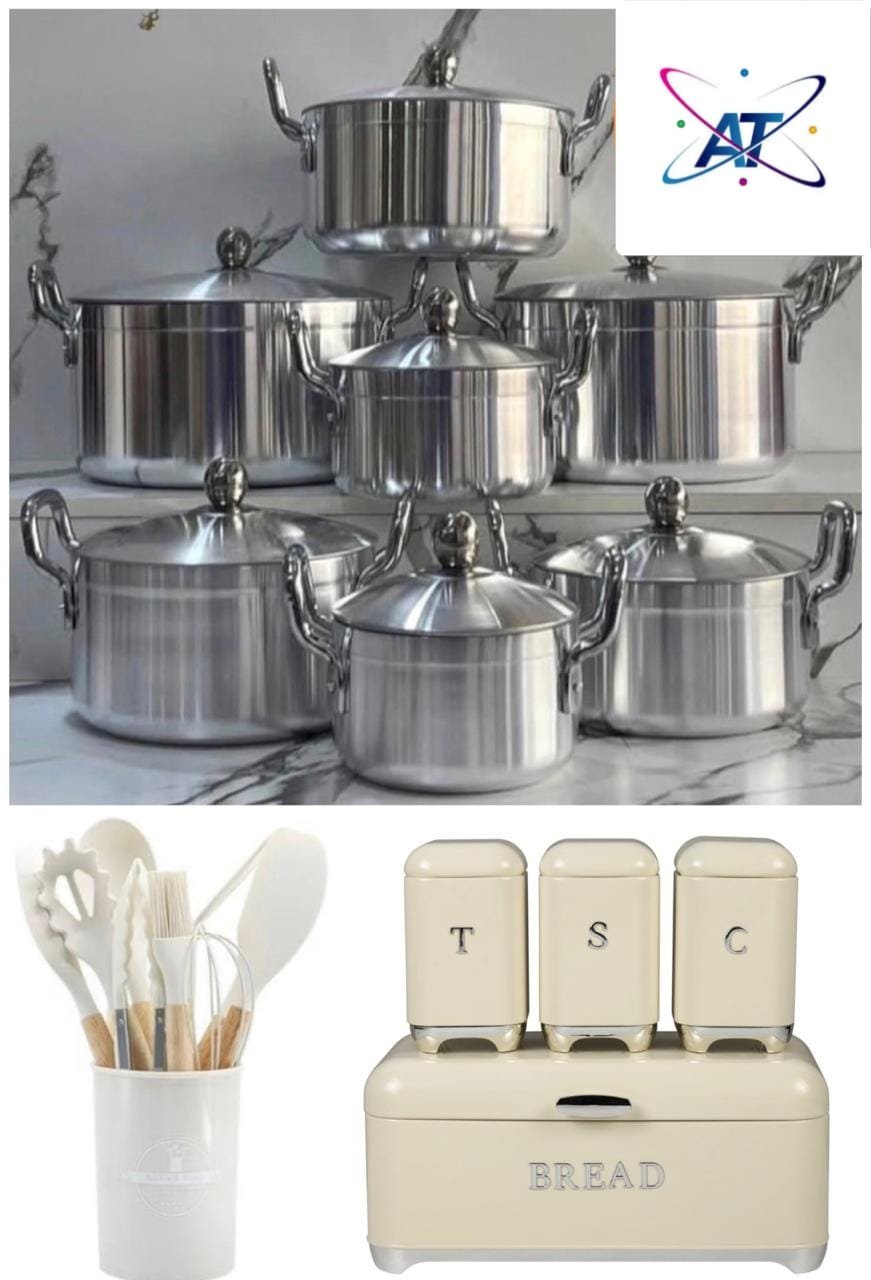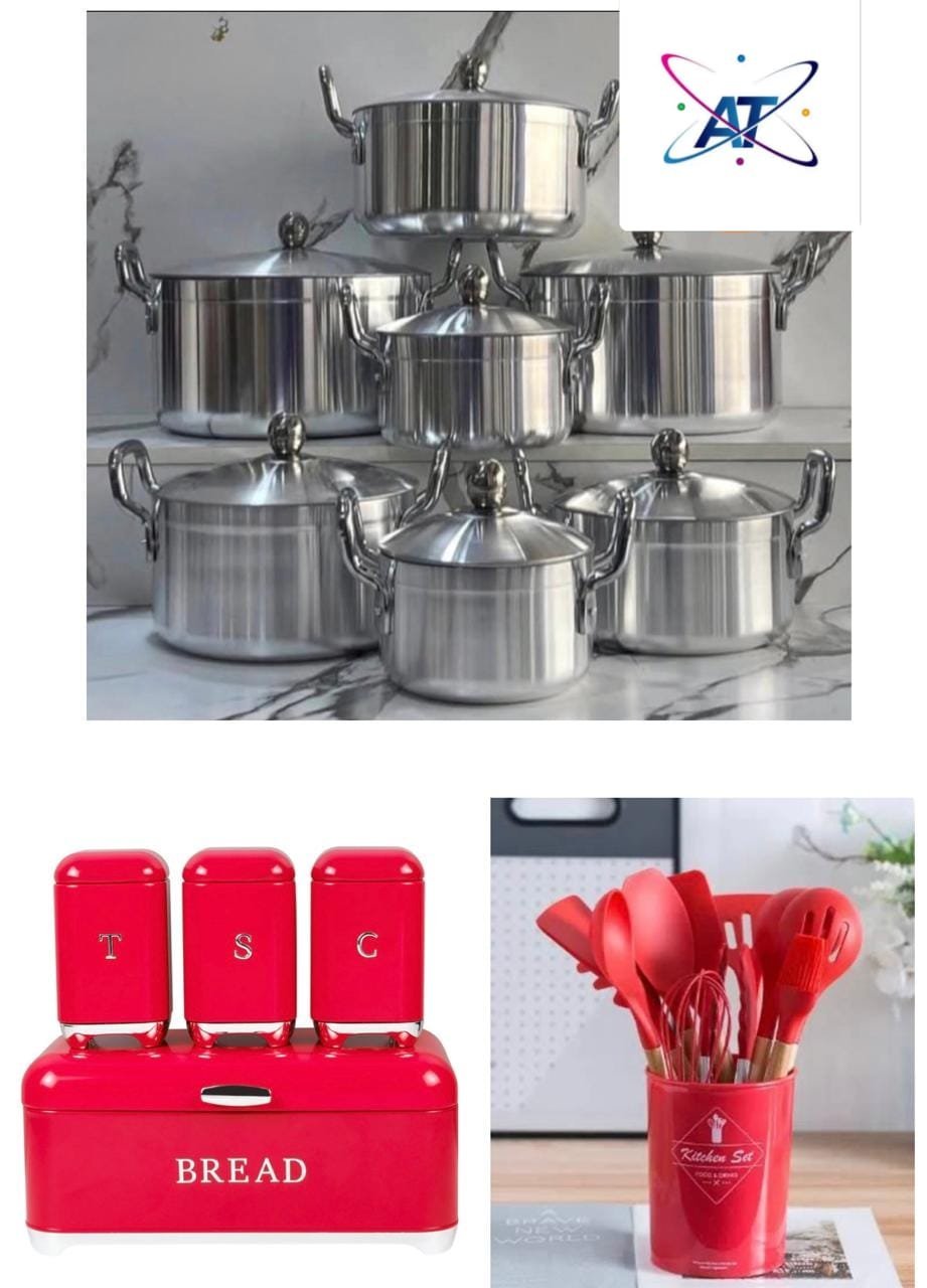 4 caixas para pão ➕ 12 colheres de silicone ➕ 14 panelas de alumínio