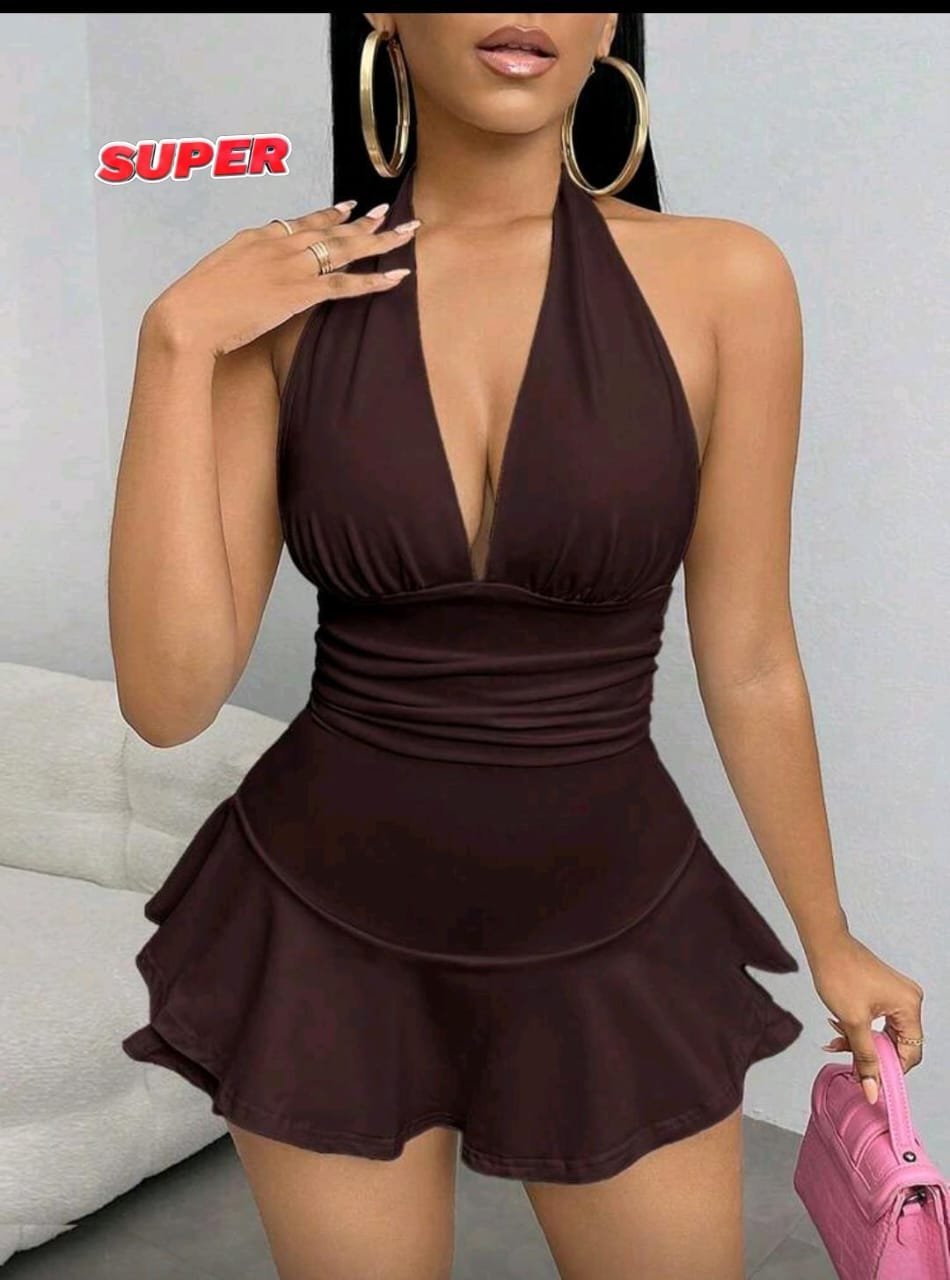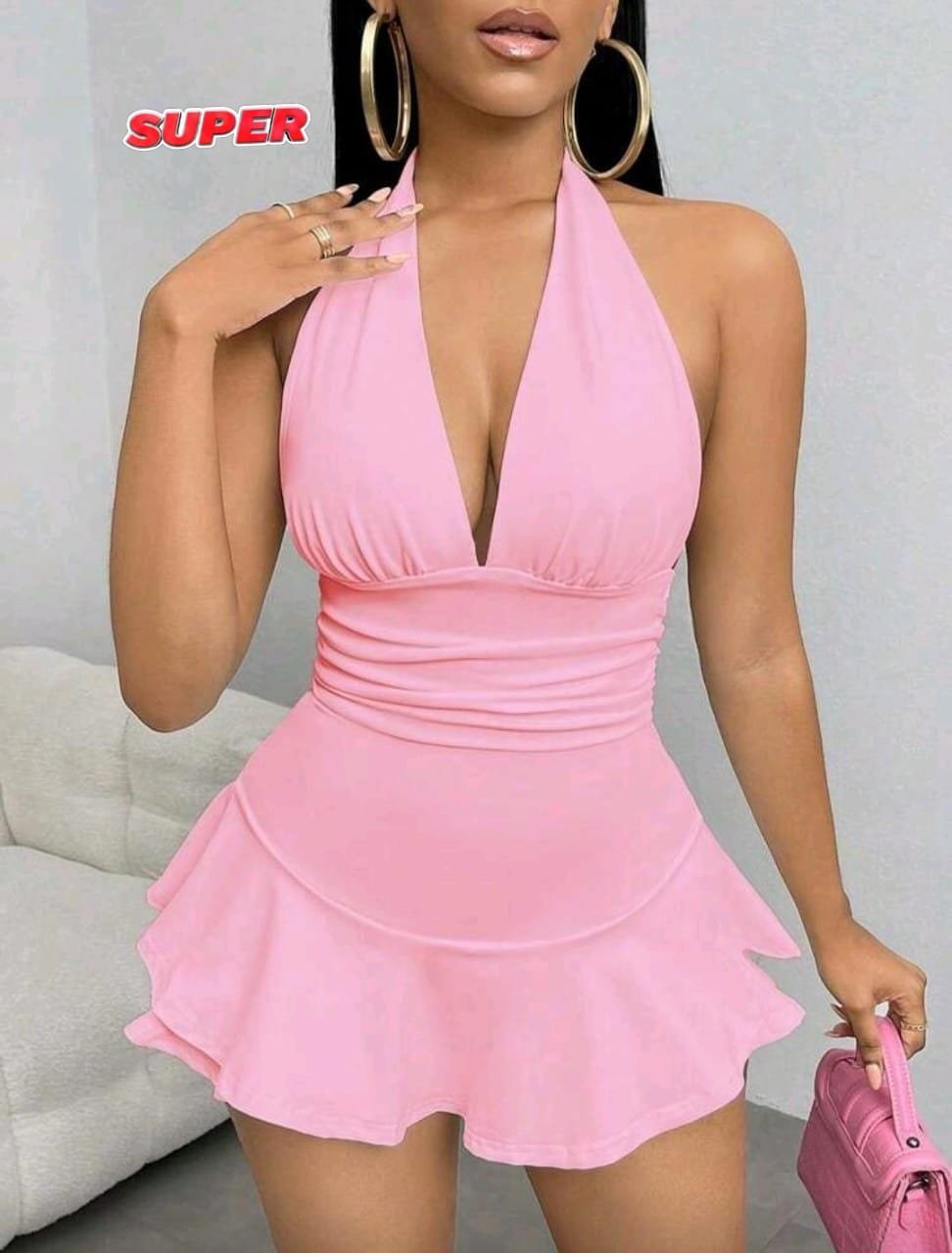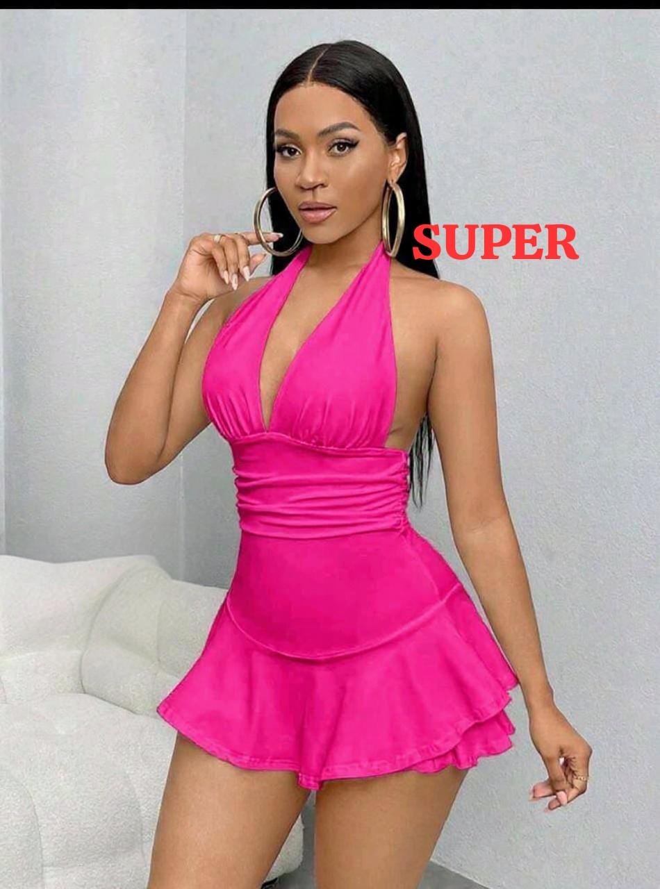 Nosso vestido halter na cor rosa chiclete é a escolha ideal! Com decote em V profundo e cintura marcada que valoriza as curvas, ele é puro charme e feminilidade.